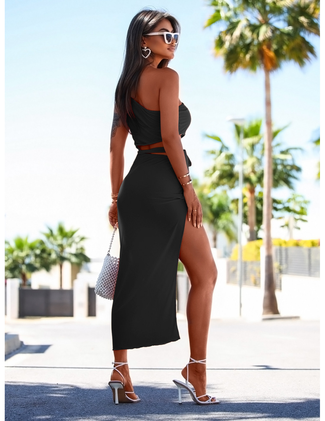 Dopasowana sukienka na jedno ramię SULLANA - czarna