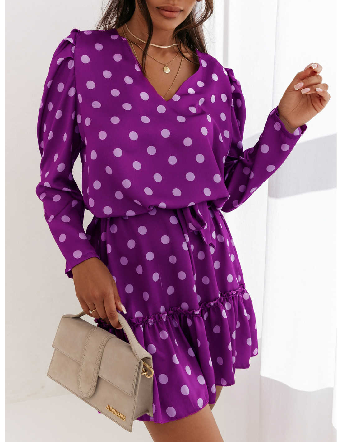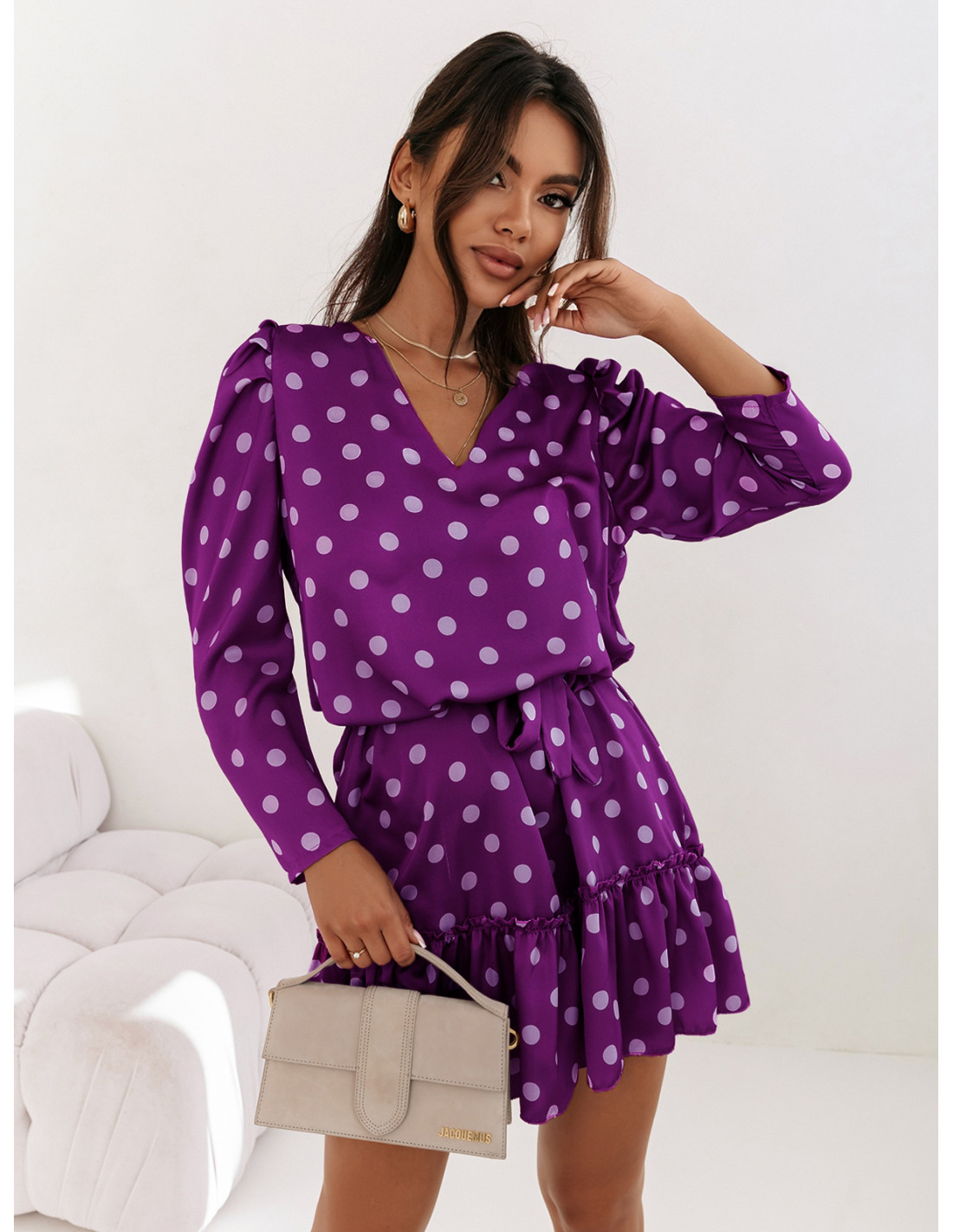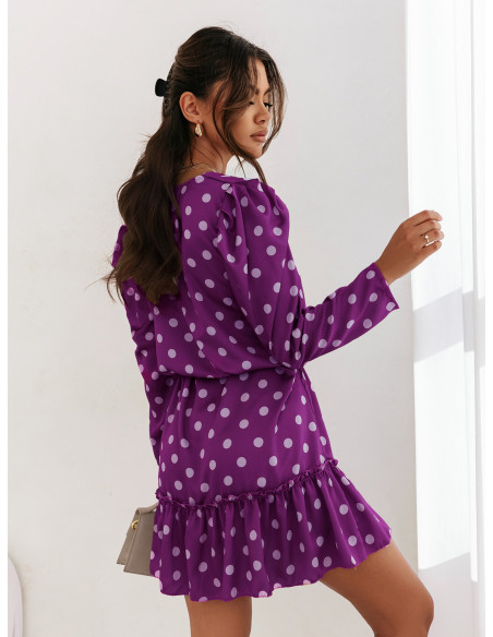 Sukienka z falbanką w groszki EDITH - fioletowa