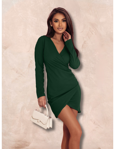 Ta przekładana sukienka z długim rękawem i dekoltem w formie litery "V" to połączenie klasyki z nowoczesnym designem.