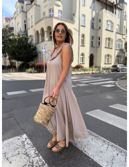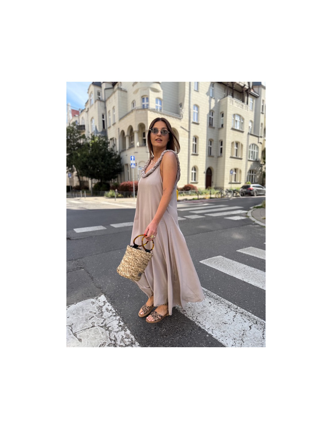 Maxi sukienka z ozdobnym warkoczem SIVIR - beżowa
