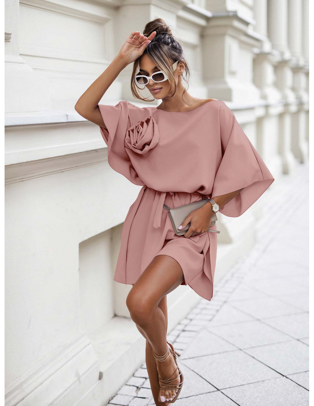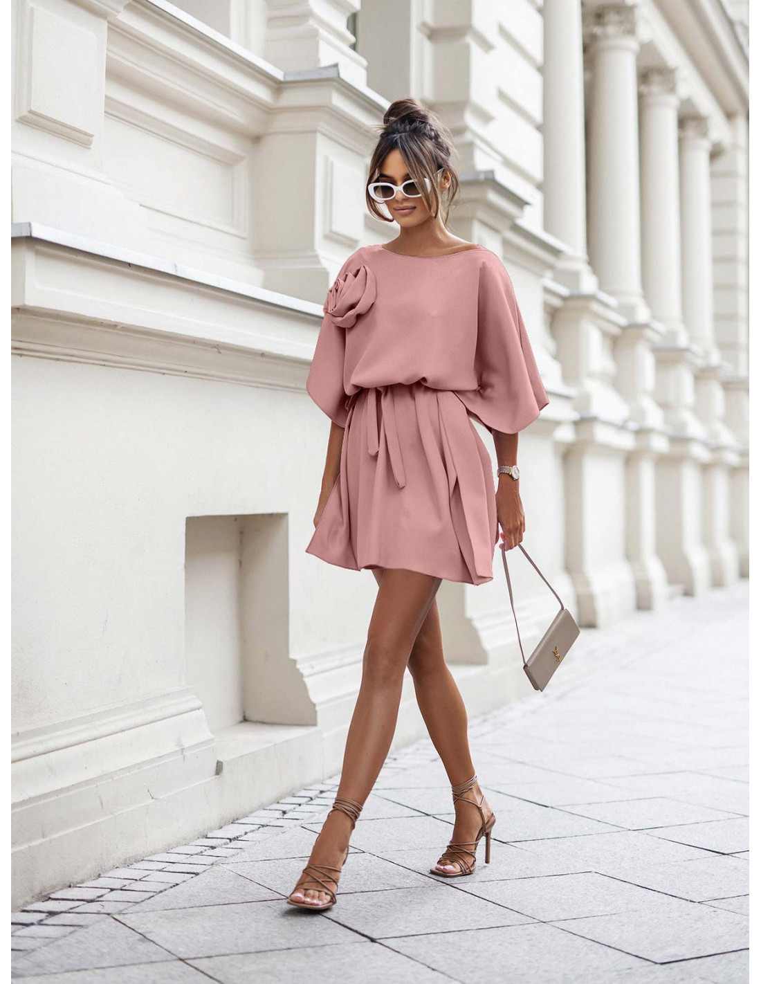 Kobieca sukienka nietoperz z różą BRIA - brudny róż