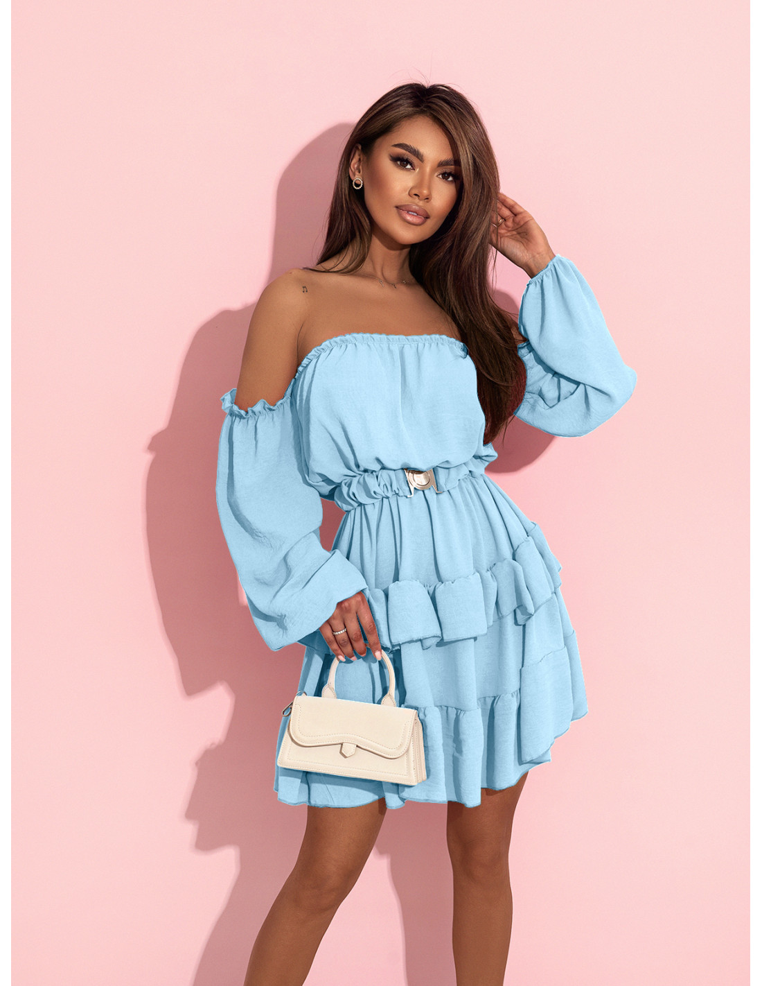 Sukienka hiszpanka z długim rękawem ROBIN - błękitna