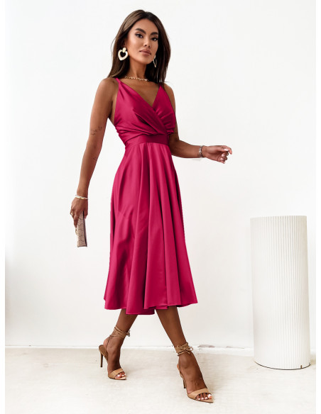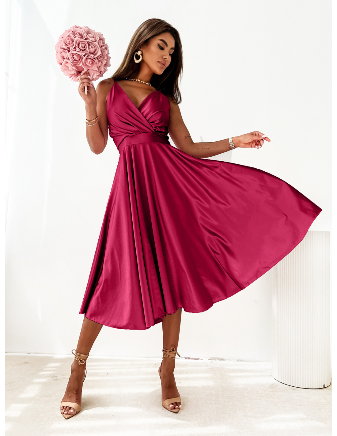 Rozkloszowana sukienka na ramiączkach CRISSY - bordowa