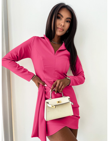 Elegancka sukienka z marszczeniem z boku SAVRIA - fuksjowa