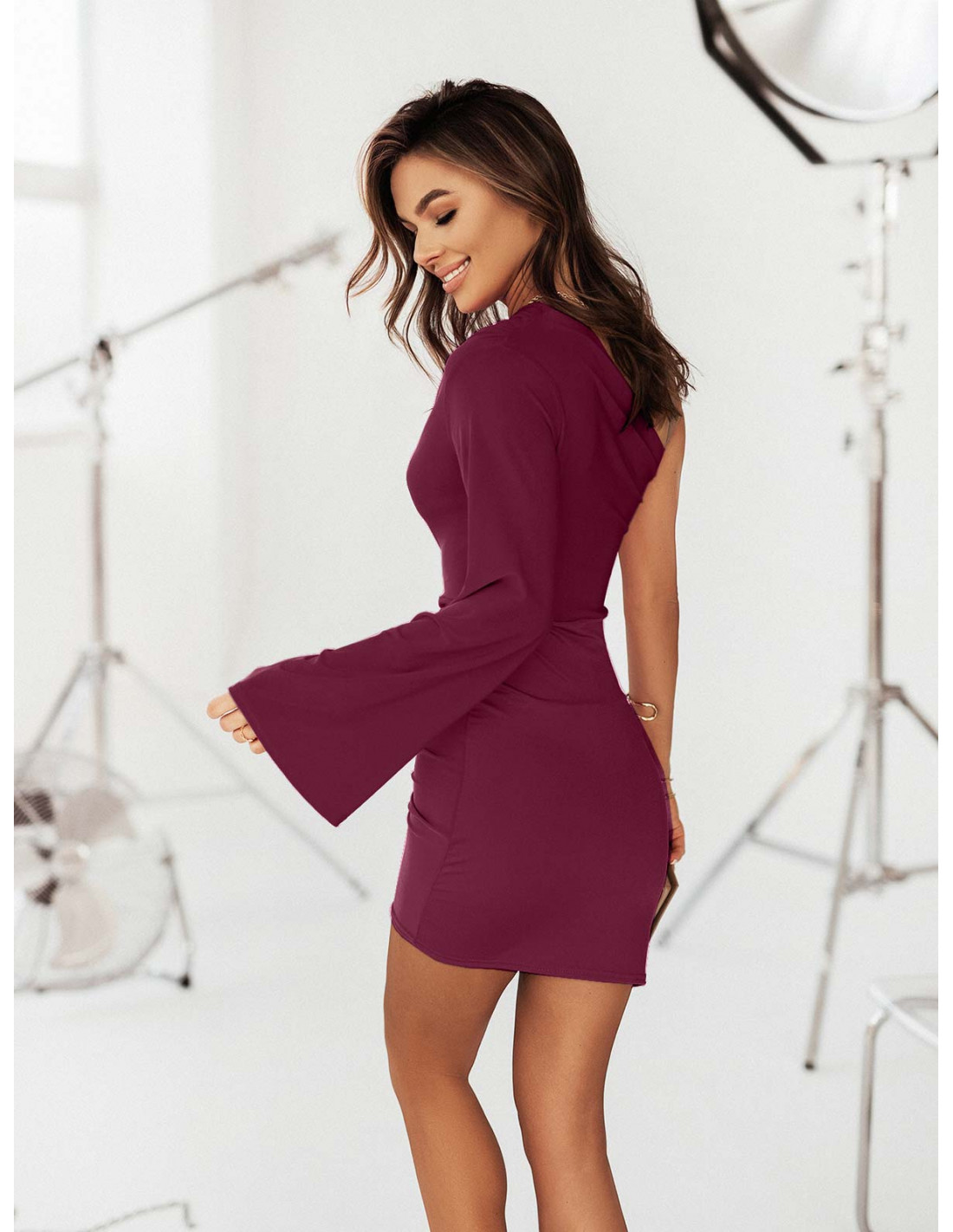 Elegancka sukienka na jedno ramię - AMALIBA - bordowa