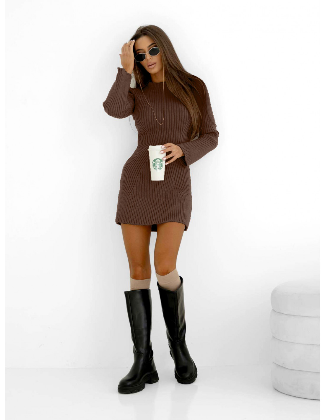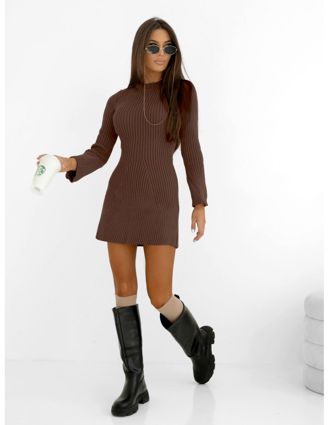 Sweterkowa mini sukienka NOVALIA - czekoladowa