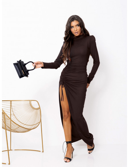 Sukienka maxi z marszczeniem z wiskozy IDRIL - czekoladowa
