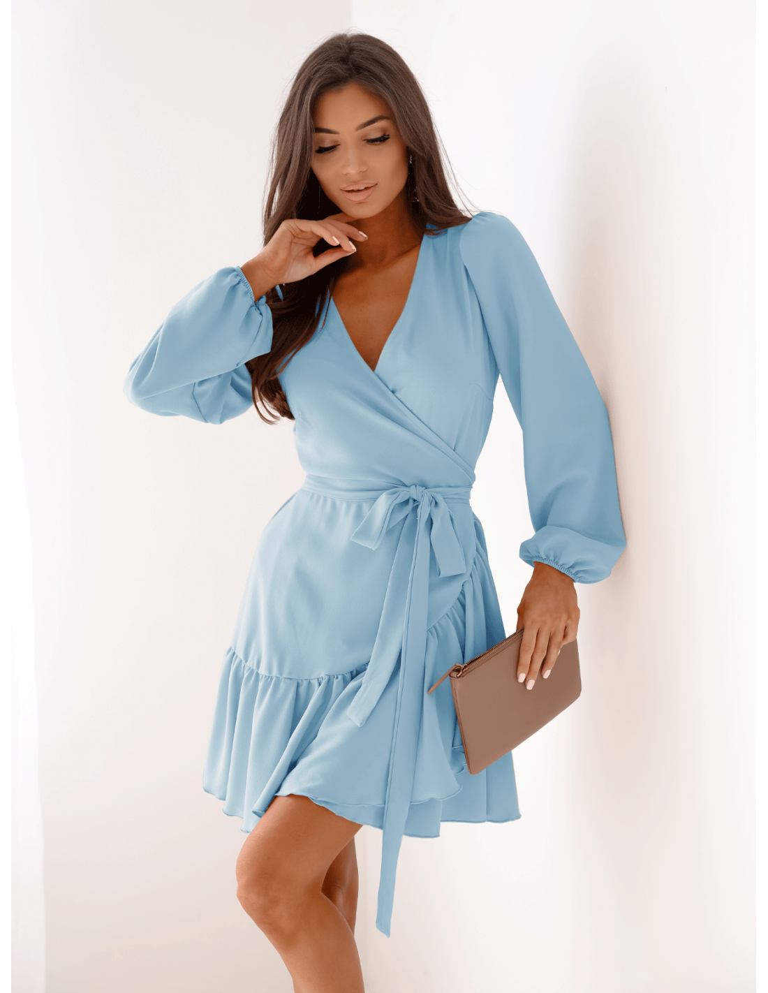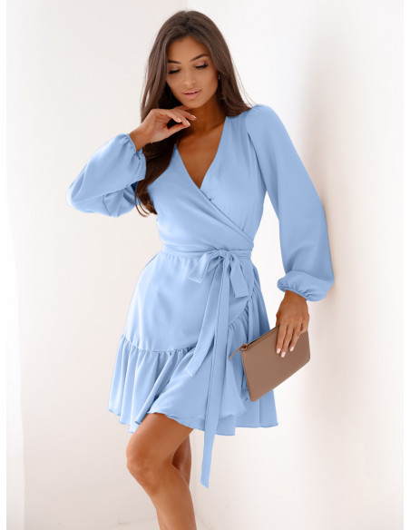 Przekładana sukienka z falbaną LURETTE - błękitna