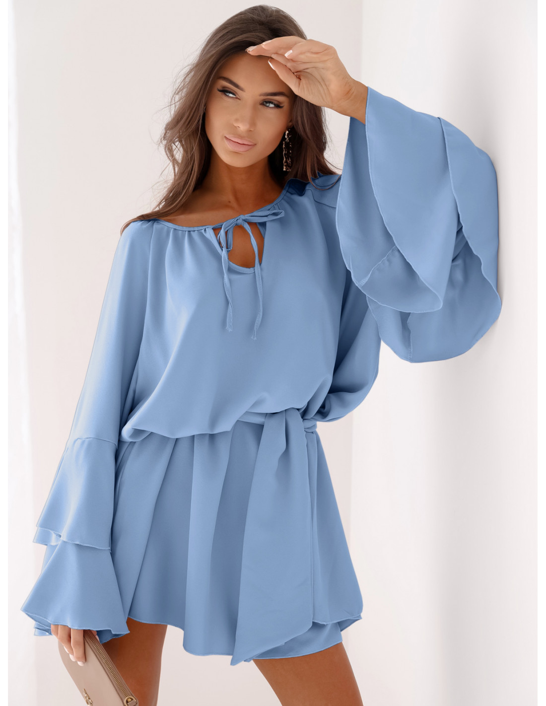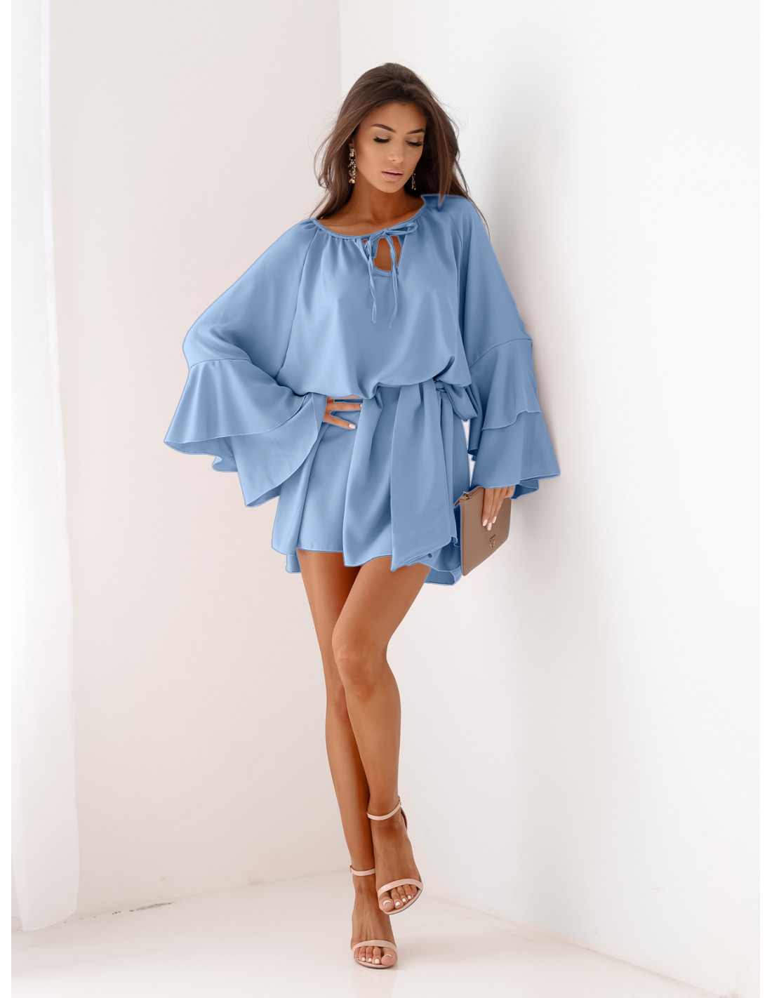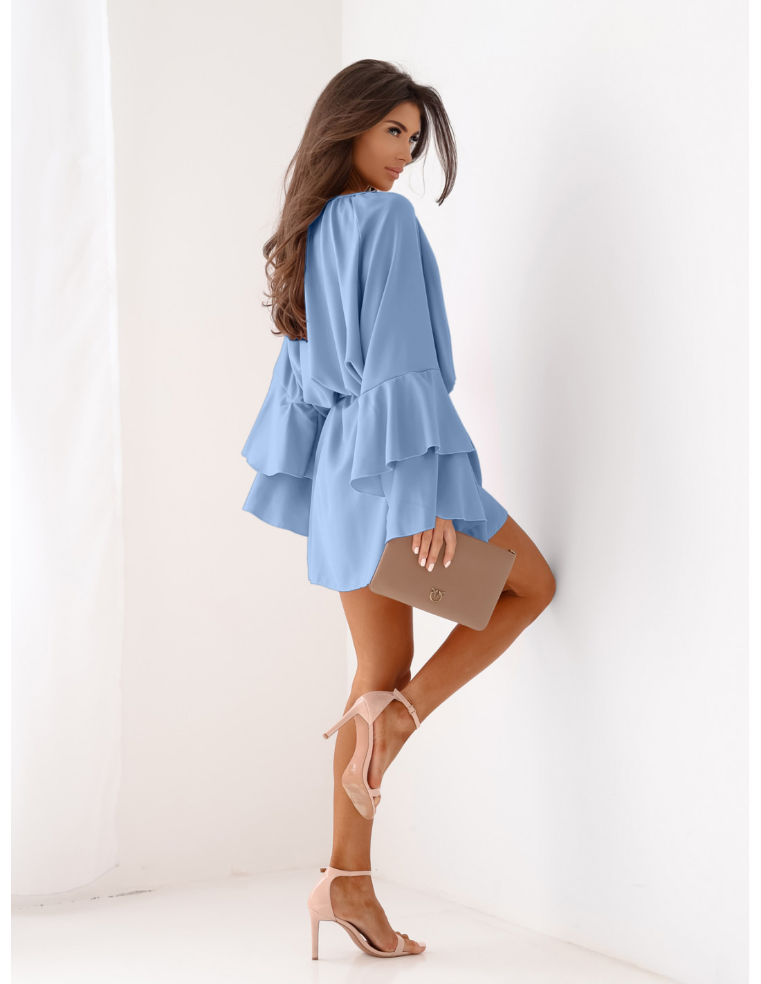 Sukienka oversize z falbanami na rękawach ZUMA - błękitna