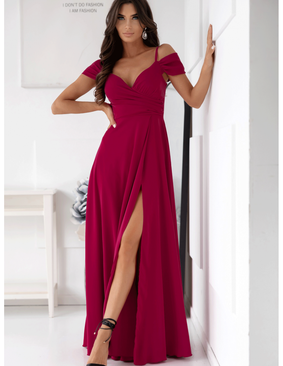 Maxi sukienka z przekładanym dekoltem LIENORA - bordowa