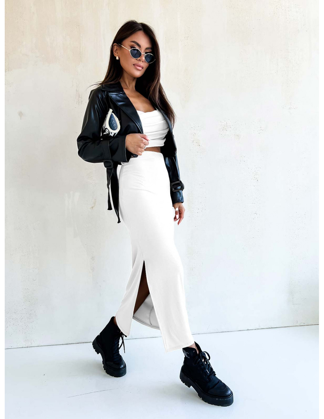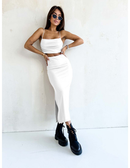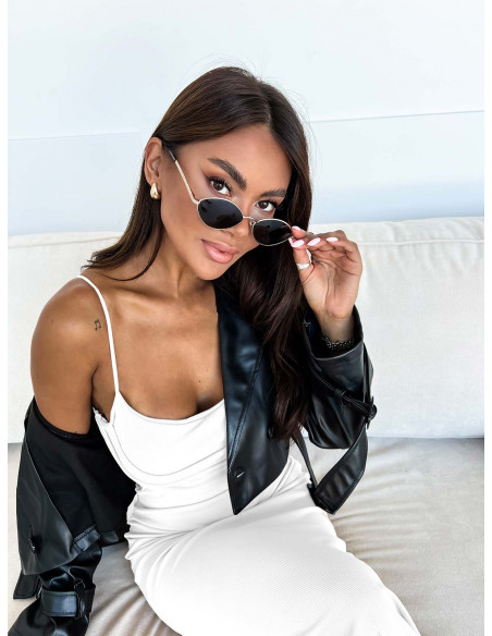 Dopasowana maxi sukienka na ramiączkach YELENA - biała
