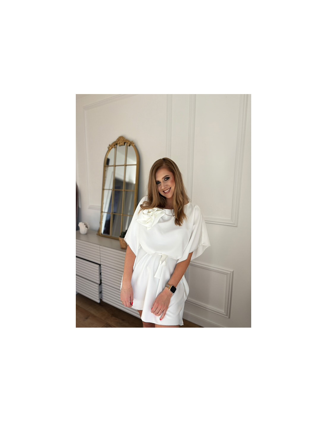 Kobieca sukienka nietoperz z różą BRIA - biała