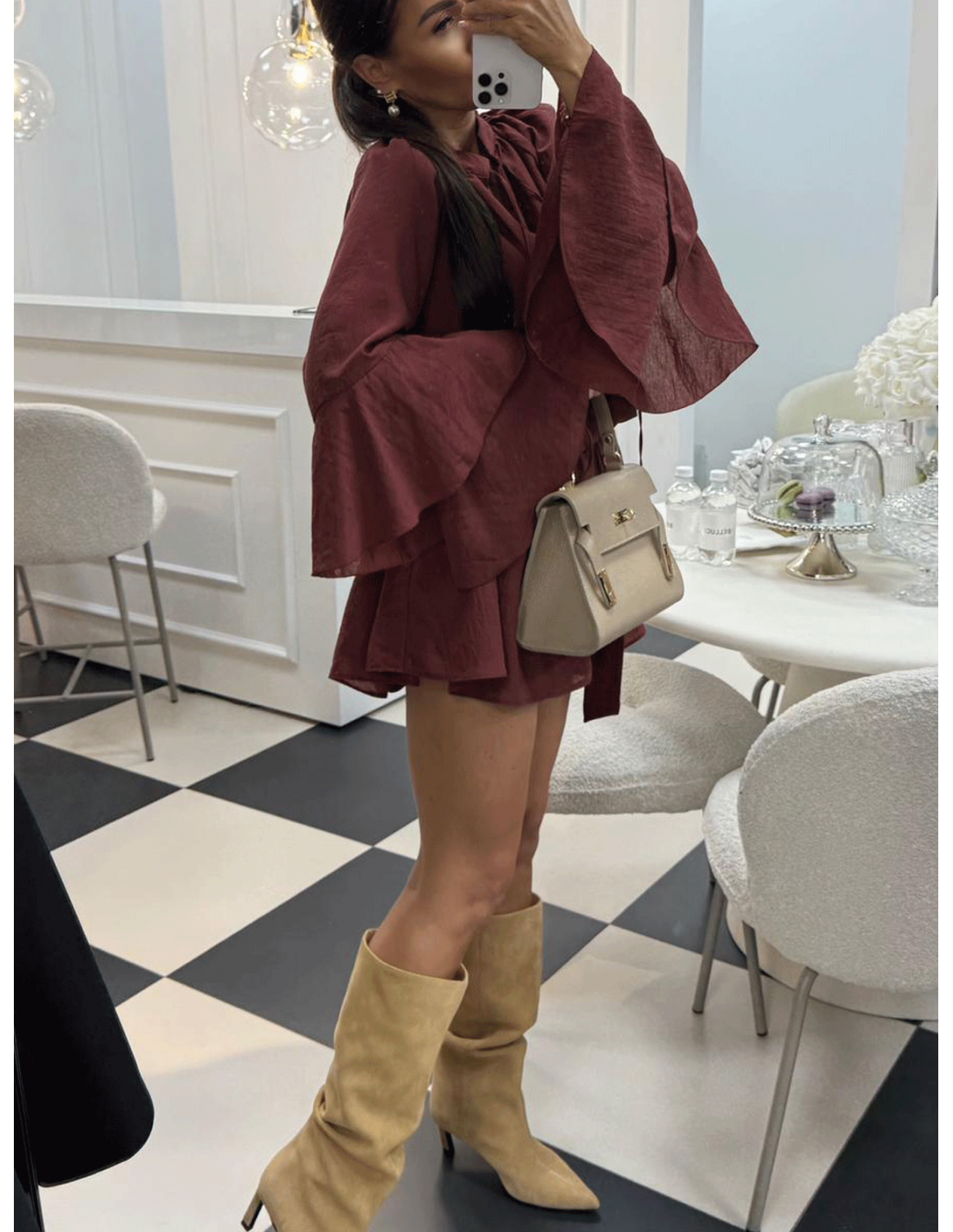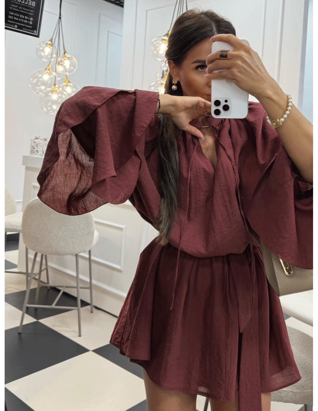 Rozkloszowana sukienka boho MELODY - ceglasta