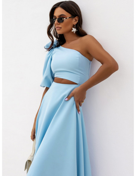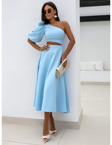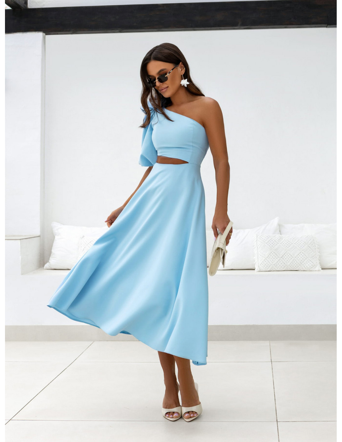Asymetryczna sukienka midi z wycięciem AVINA - błękitna