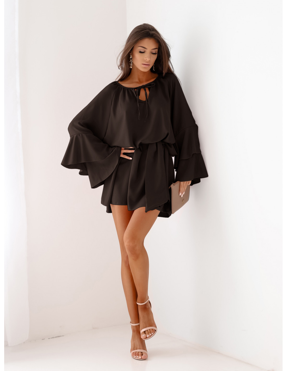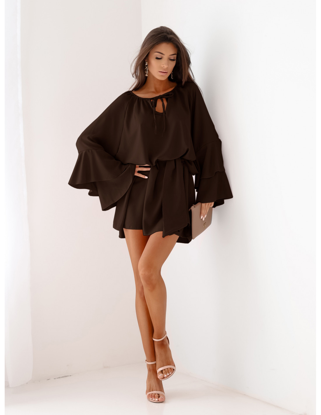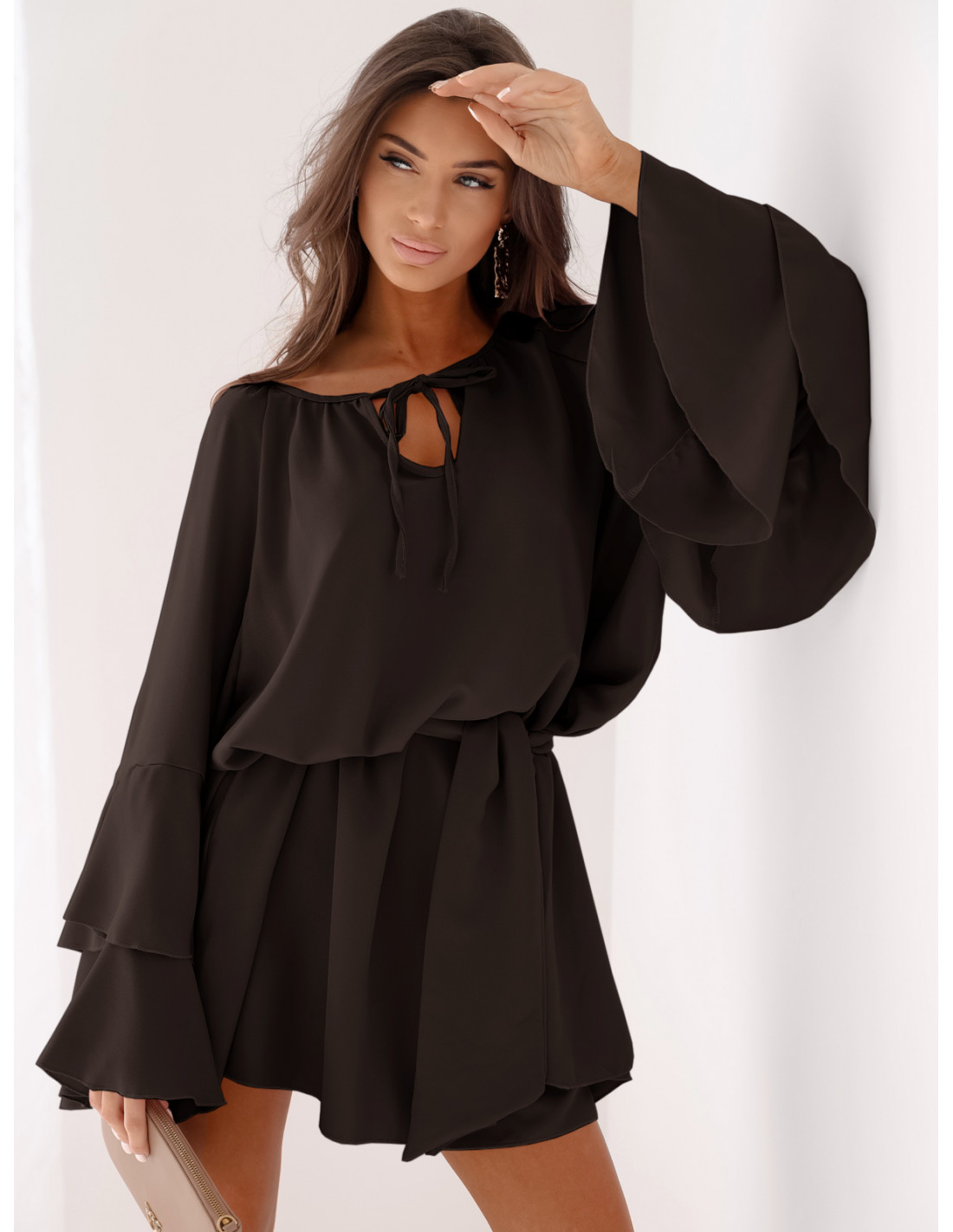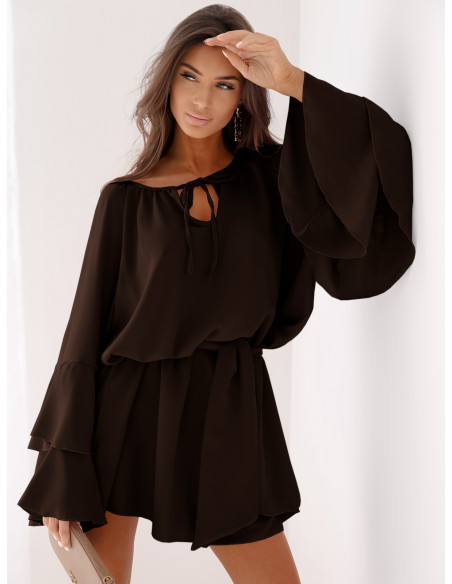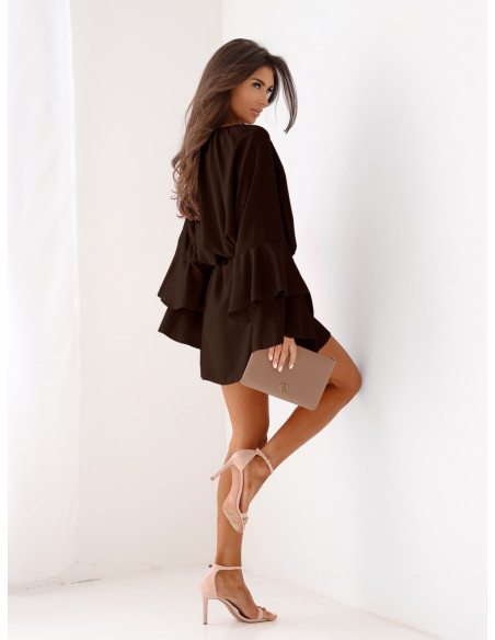 Sukienka oversize z falbanami na rękawach ZUMA - czekoladowa
