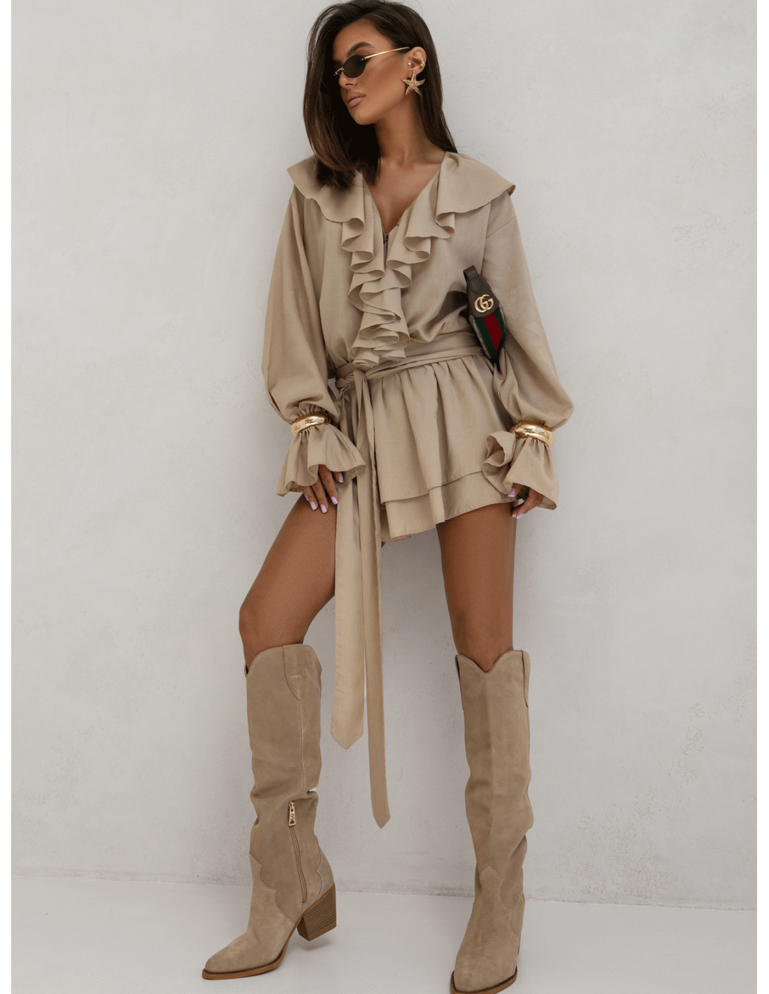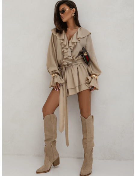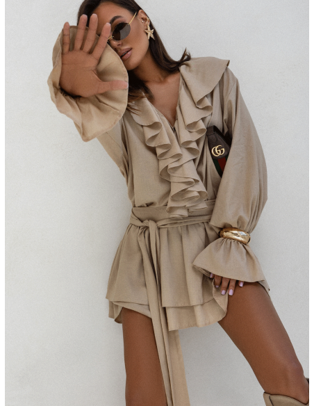 Bawełniana sukienka mini z falbanami OLIVE - beżowa