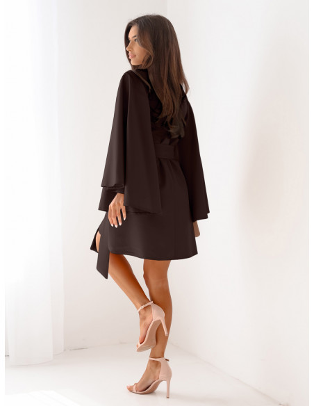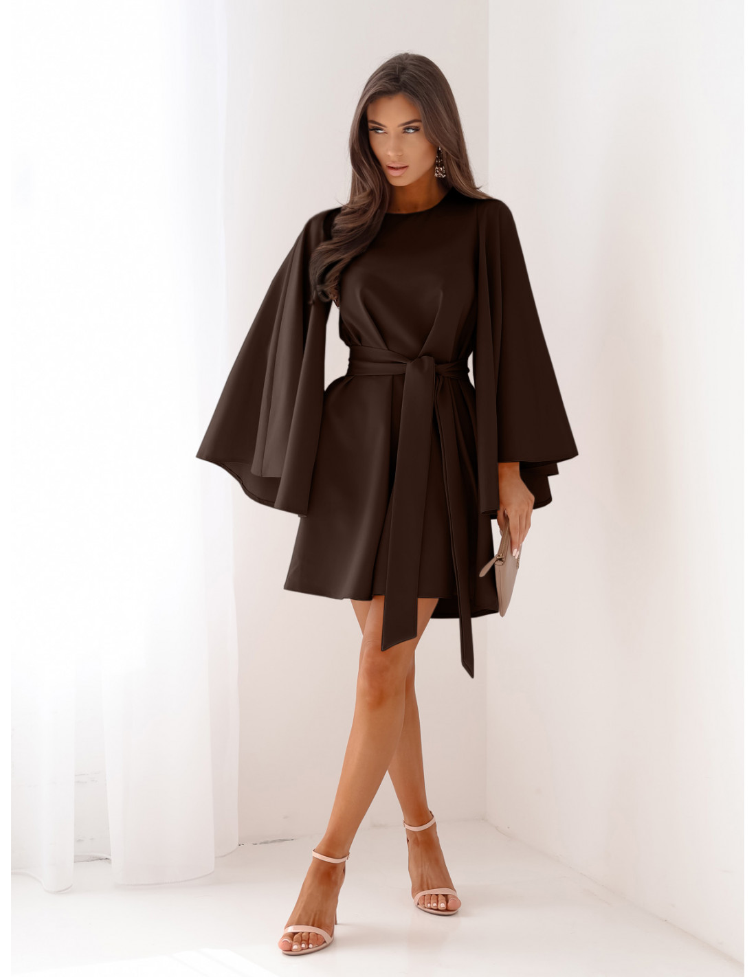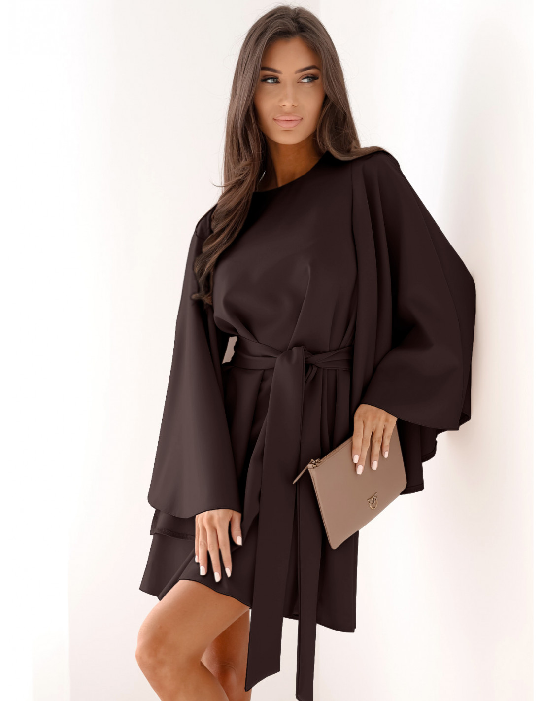 Trapezowa sukienka z szerokimi rękawami ENJA - czekoladowa