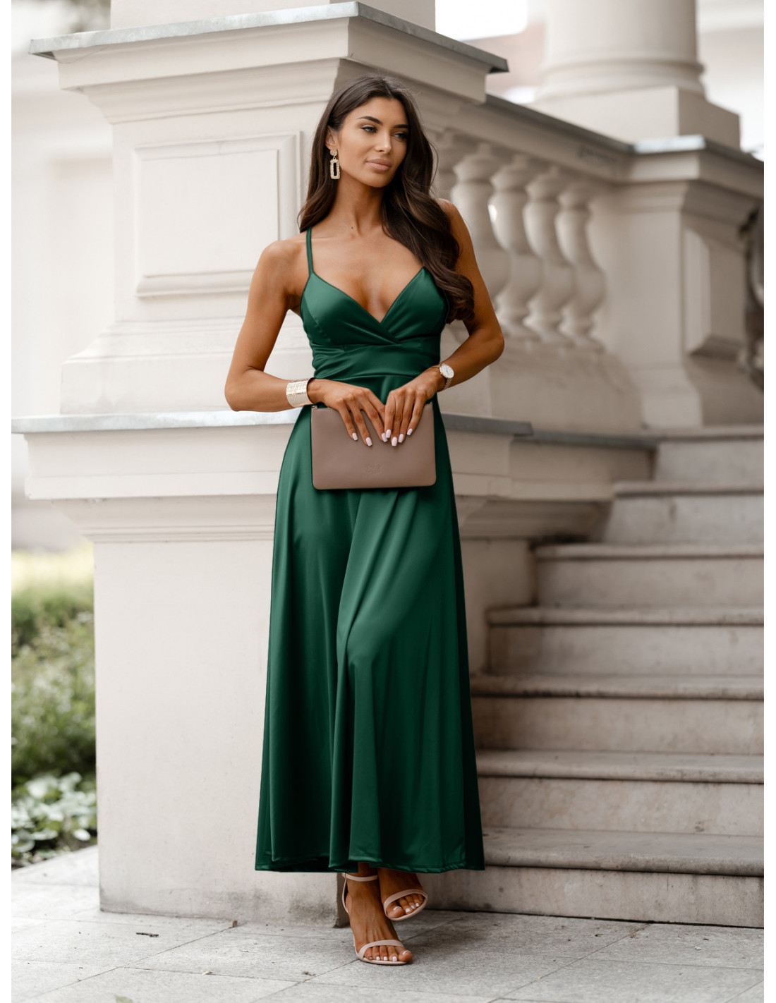 Satynowa sukienka maxi na ramiączkach LUNERA - butelkowa zieleń