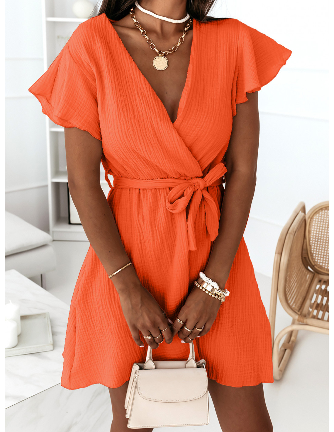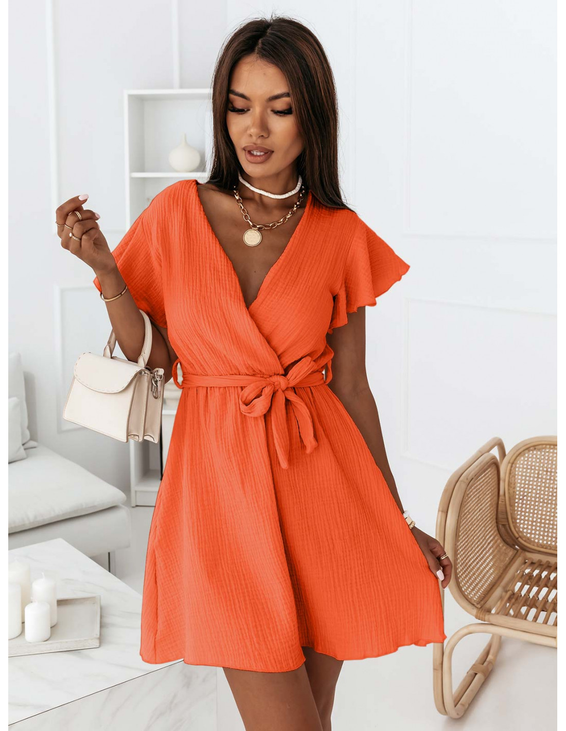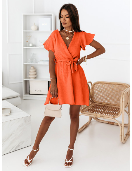 Sukienka muślinowa z kopertowym dekoltem LAFI - orange