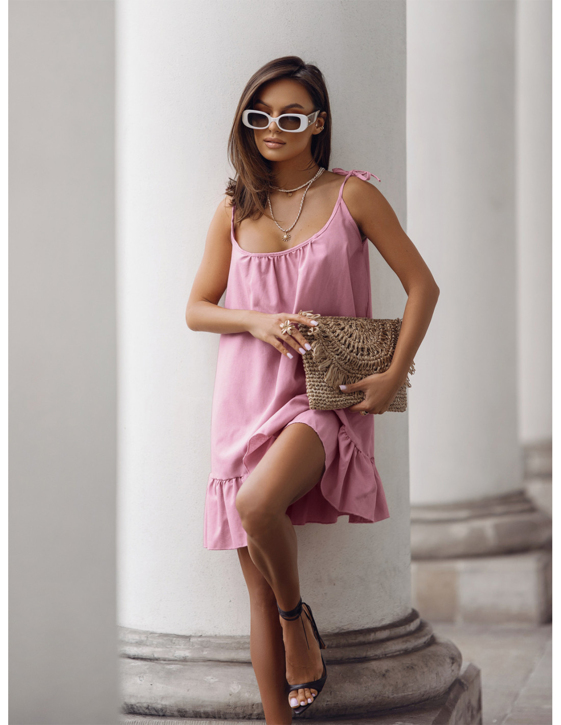 Lniana trapezowa sukienka na ramiączkach MELEA - brudny róż
