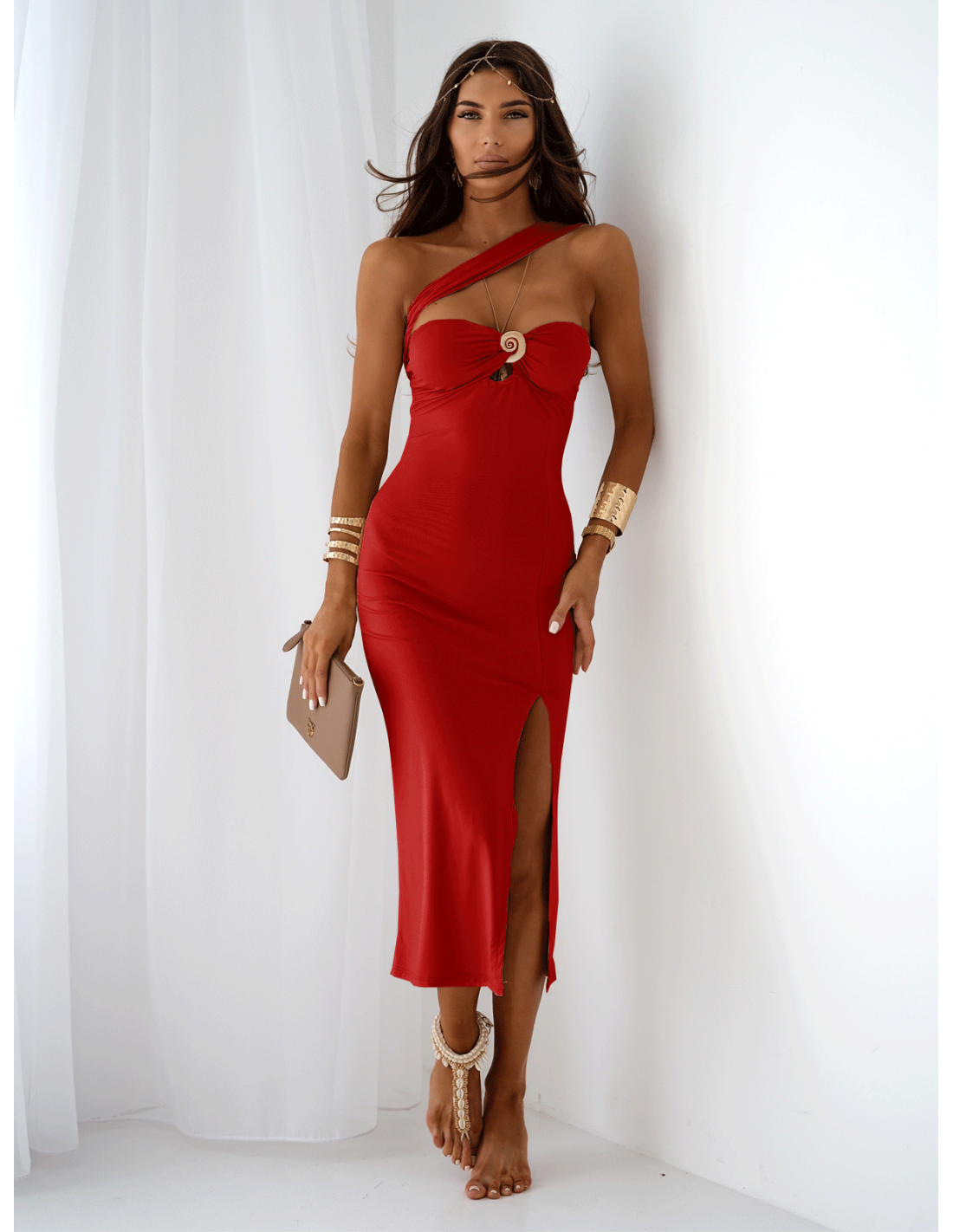 Sukienka midi LOVISA to zjawiskowa propozycja, która podkreśla kobiecą sylwetkę i przyciąga wzrok wyjątkowymi detalami.
