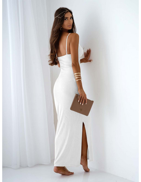 Prążkowana sukienka na ramiączkach NAJANA - biała