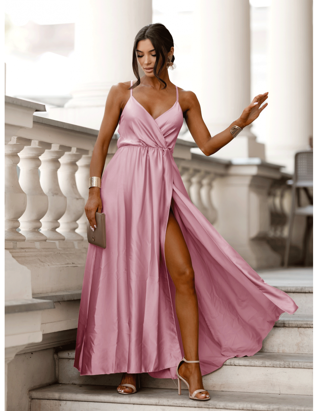 Satynowa sukienka maxi na ramiączkach ARIJA - pudrowy róż