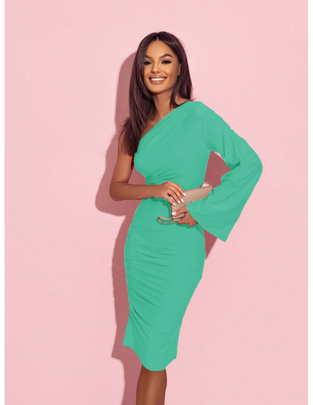 Dopasowana sukienka na jedno ramię EZALI - miętowa