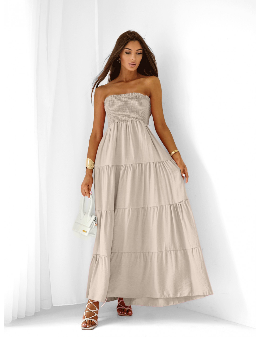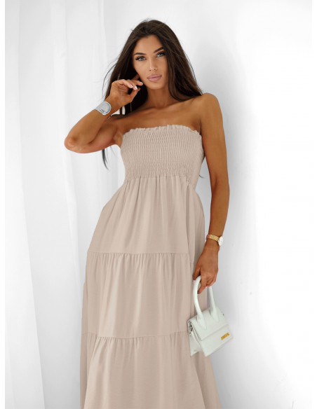Wiskozowa sukienka maxi bez ramiączek SIMONA - beżowa