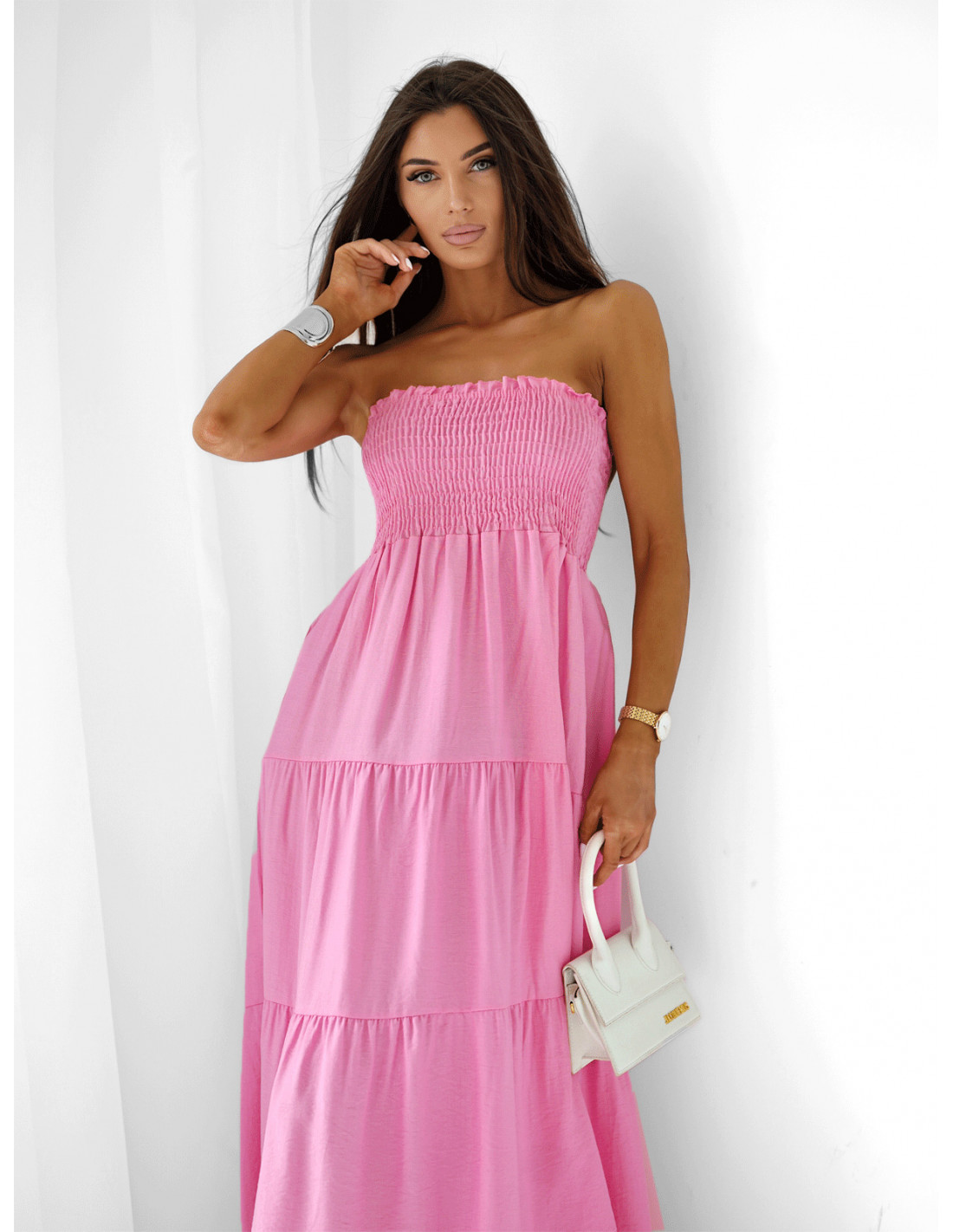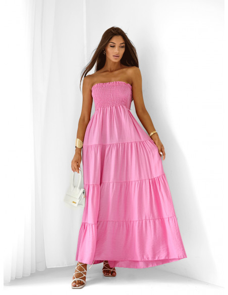 Wiskozowa sukienka maxi bez ramiączek SIMONA - różowa