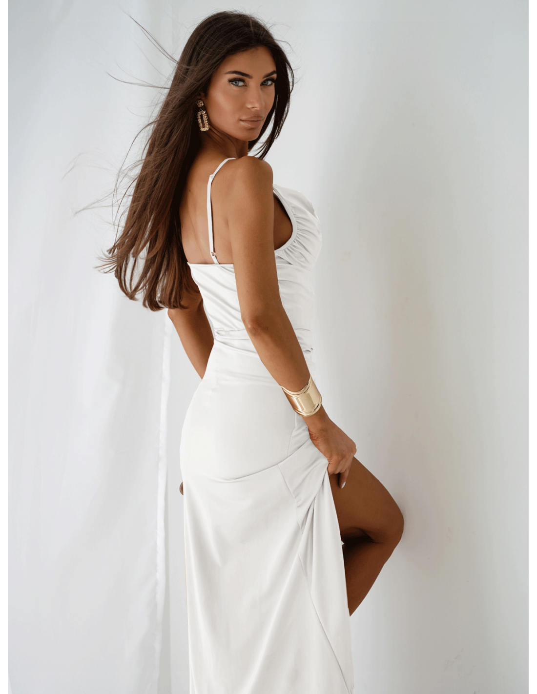 Dopasowana sukienka maxi na ramiączkach DIXIE - biała
