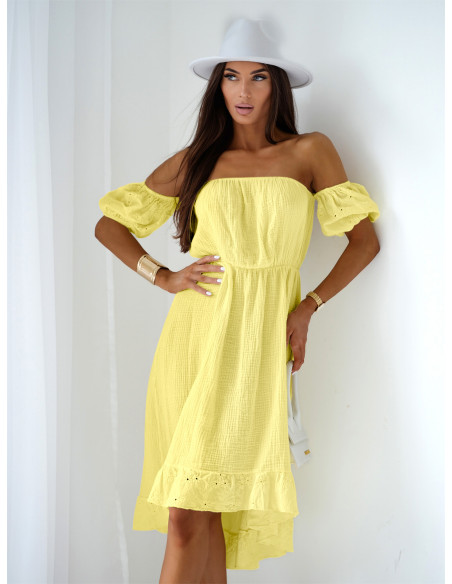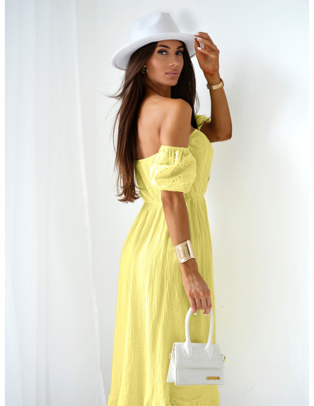 Muślinowa sukienka hiszpanka MARISOL - cytrynowa