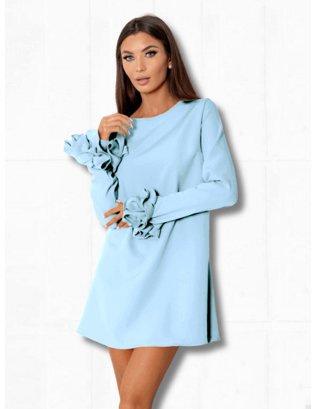 Sukienka trapezowa z ozdobnymi rękawami MANITA - błękitna