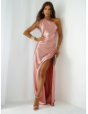 Satynowa sukienka maxi na jedno ramię MINNIE - brudny róż