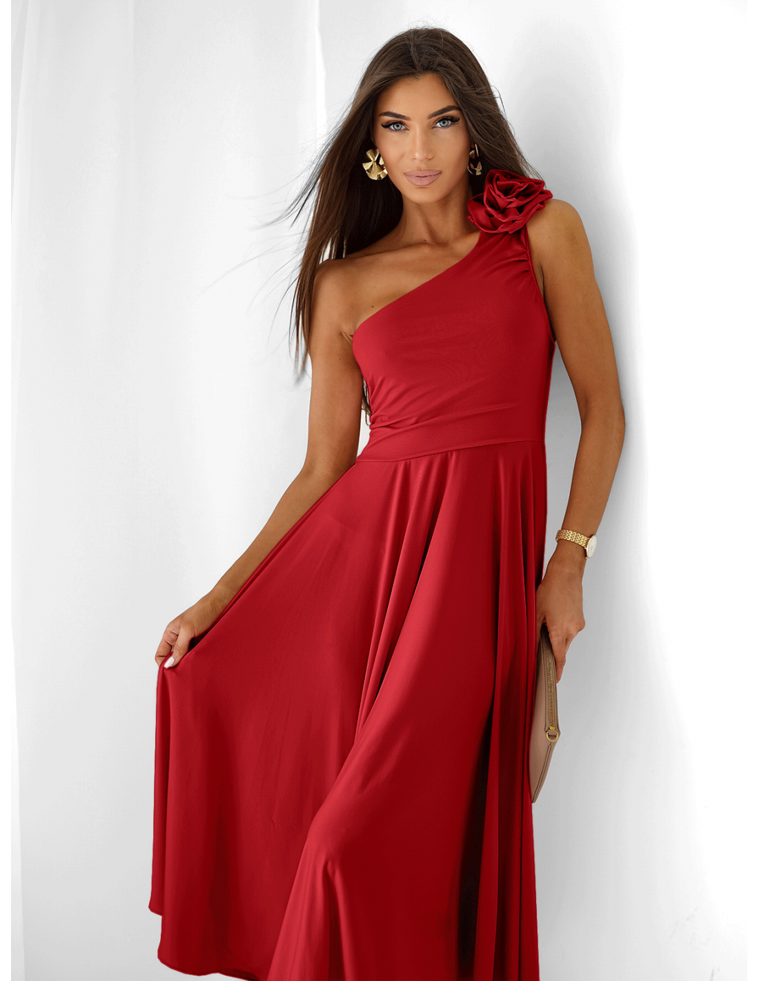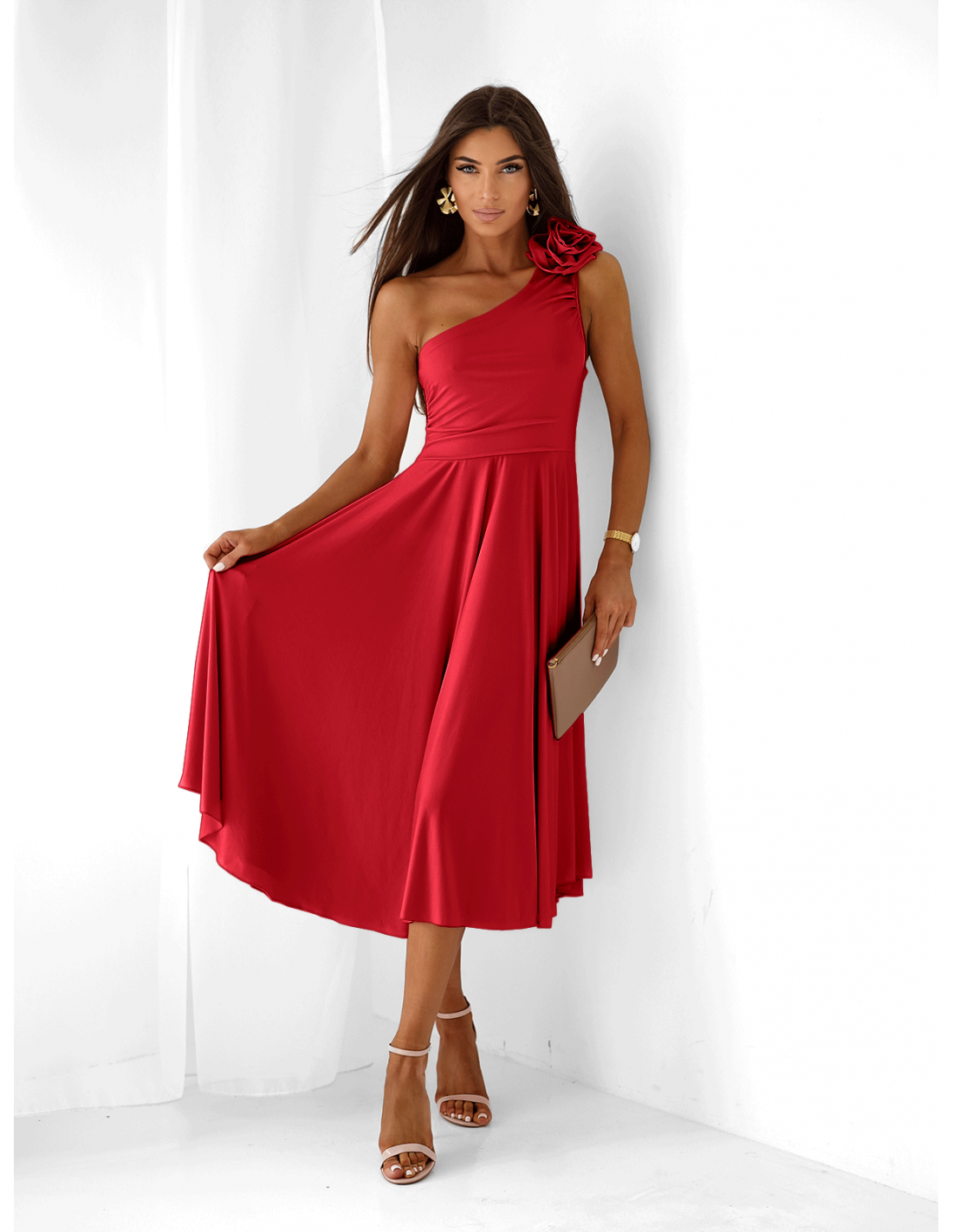 Sukienka midi na jedno ramię AMIREA - czerwona