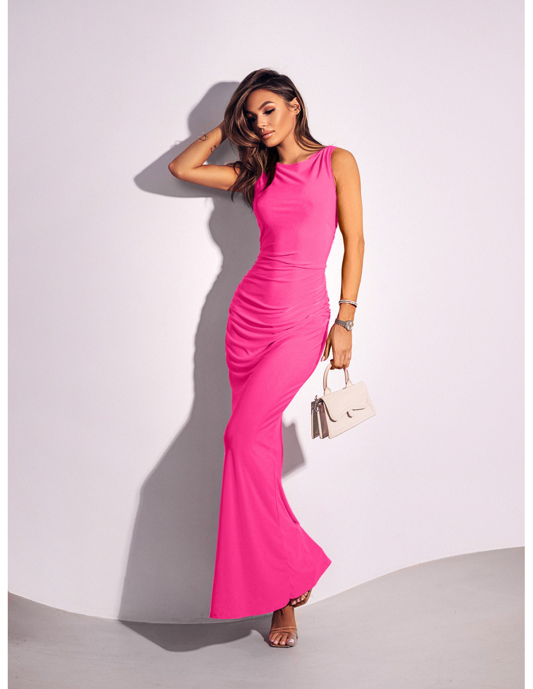 Sukienka maxi z odsłoniętymi plecami ELARA - neon róż