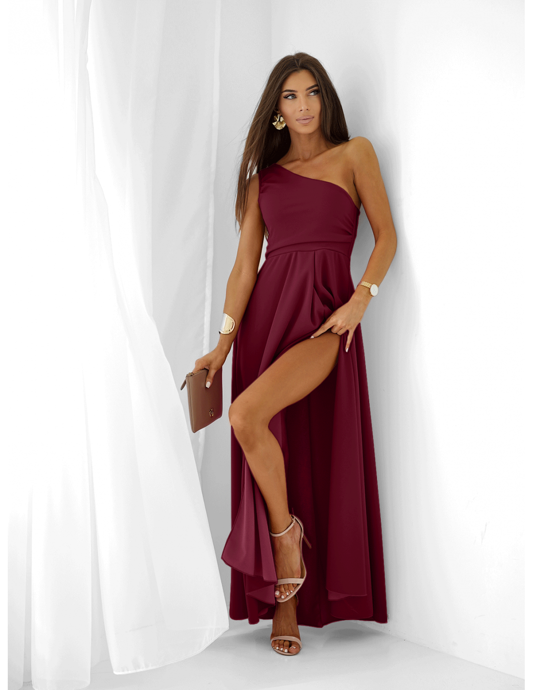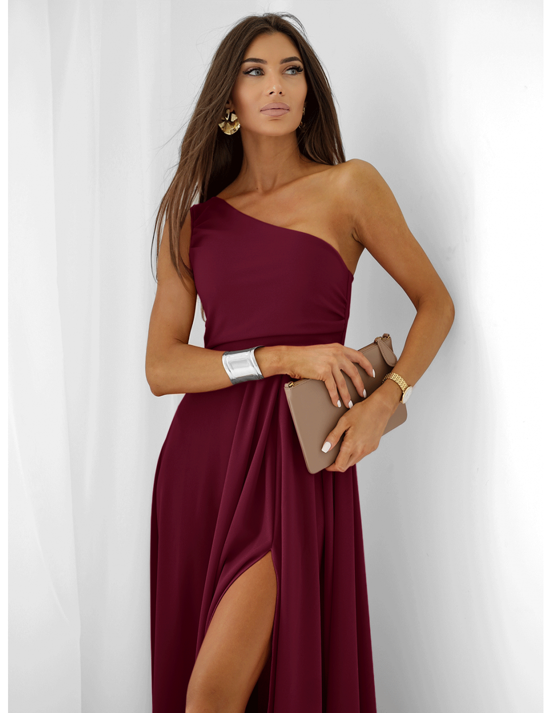 Sukienka maxi na jedno ramię SAVERA - bordowa