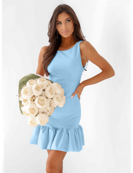 Trapezowa sukienka mini z falbaną IRRIA - błękitna