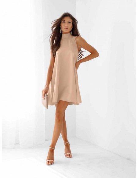 Trapezowa sukienka mini ze stójką ARLENA - beżowa