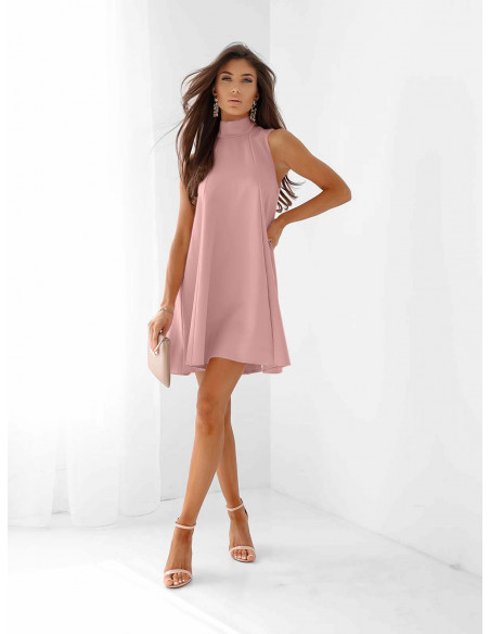 Trapezowa sukienka mini ze stójką ARLENA - brudny róż