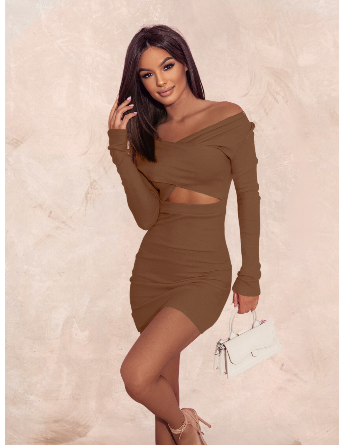 WP sukienka z wycięciem w talii - czekoladowa