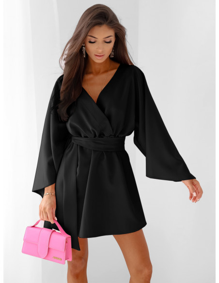 Sukienka mini z przekładanym dekoltem ALIA - czarna