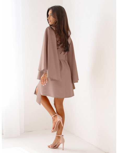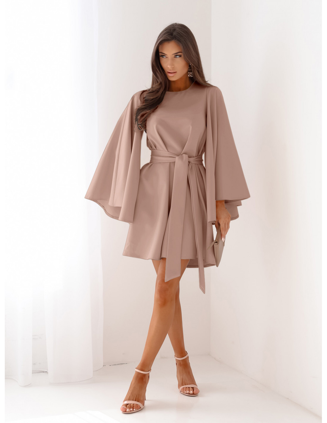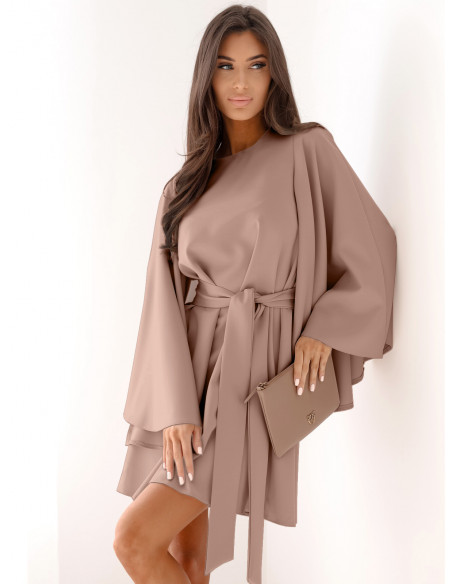 Trapezowa sukienka z szerokimi rękawami ENJA - mocha mousse