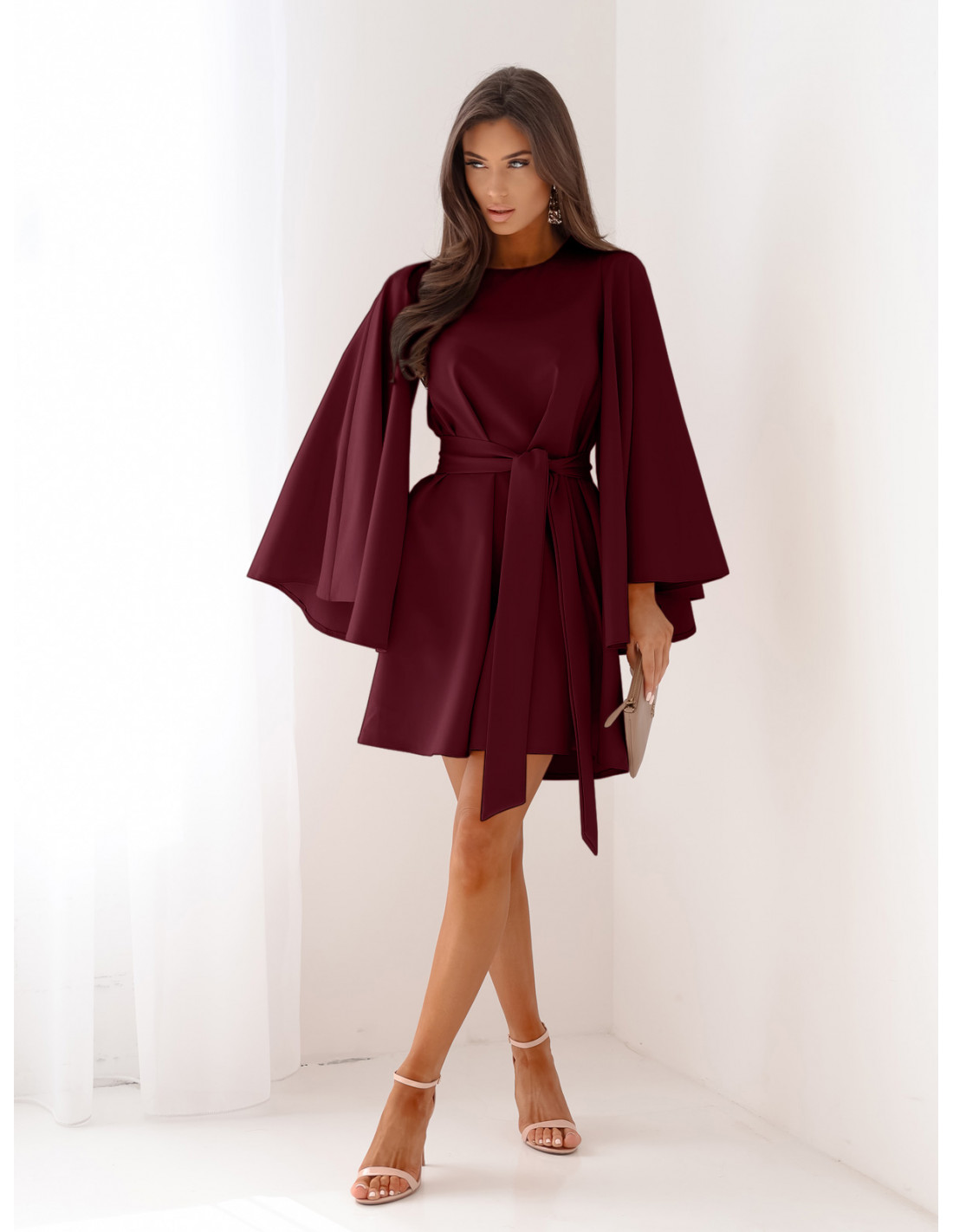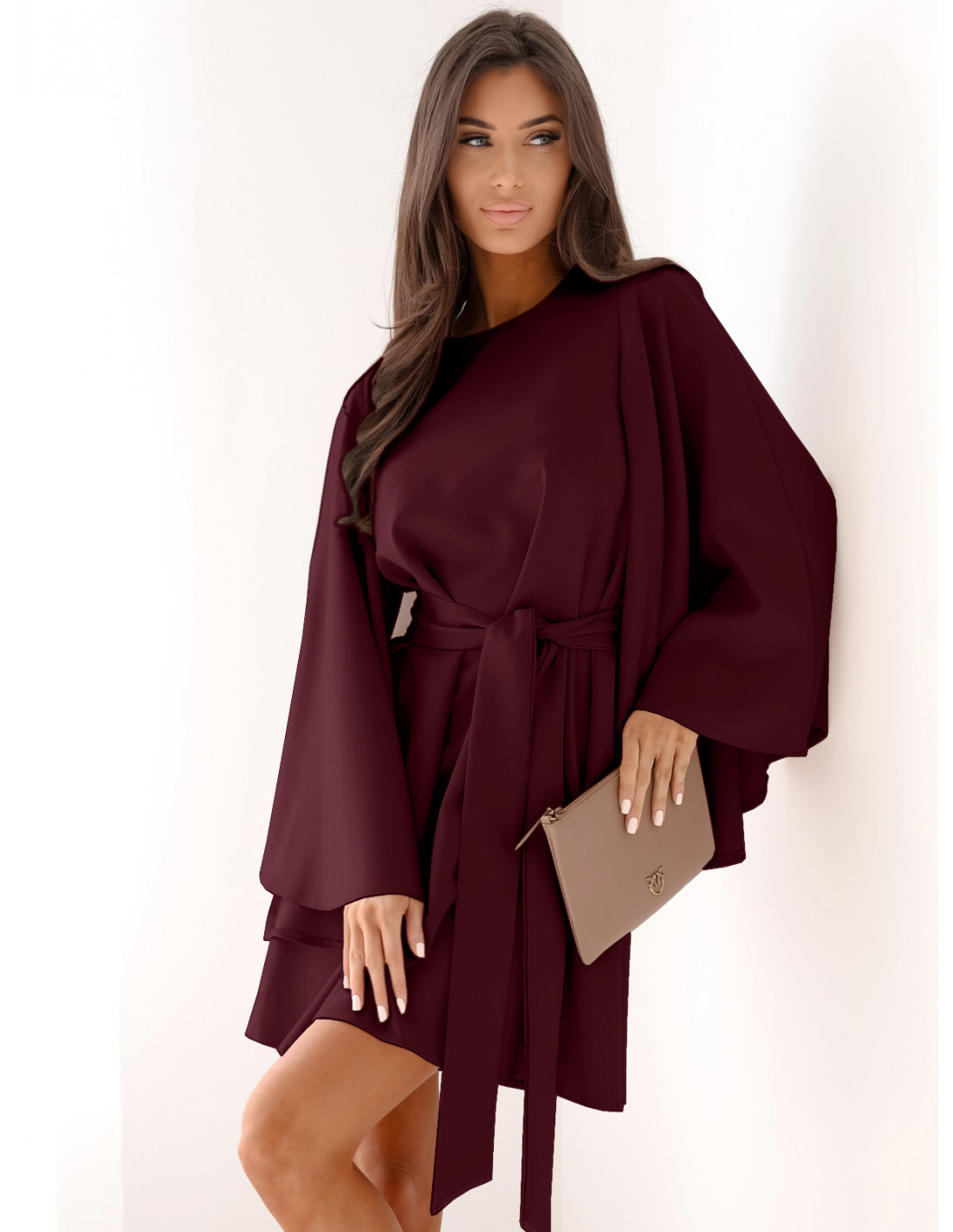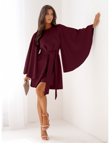 Trapezowa sukienka z szerokimi rękawami ENJA - bordowa