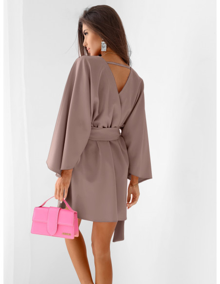 WP sukienka mini z przekładanym dekoltem - mocha mousse