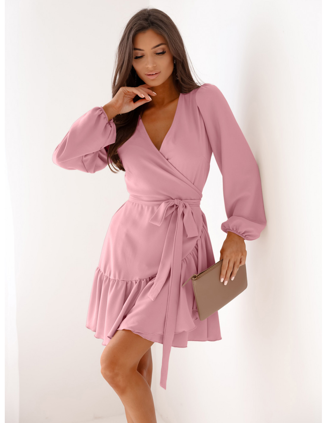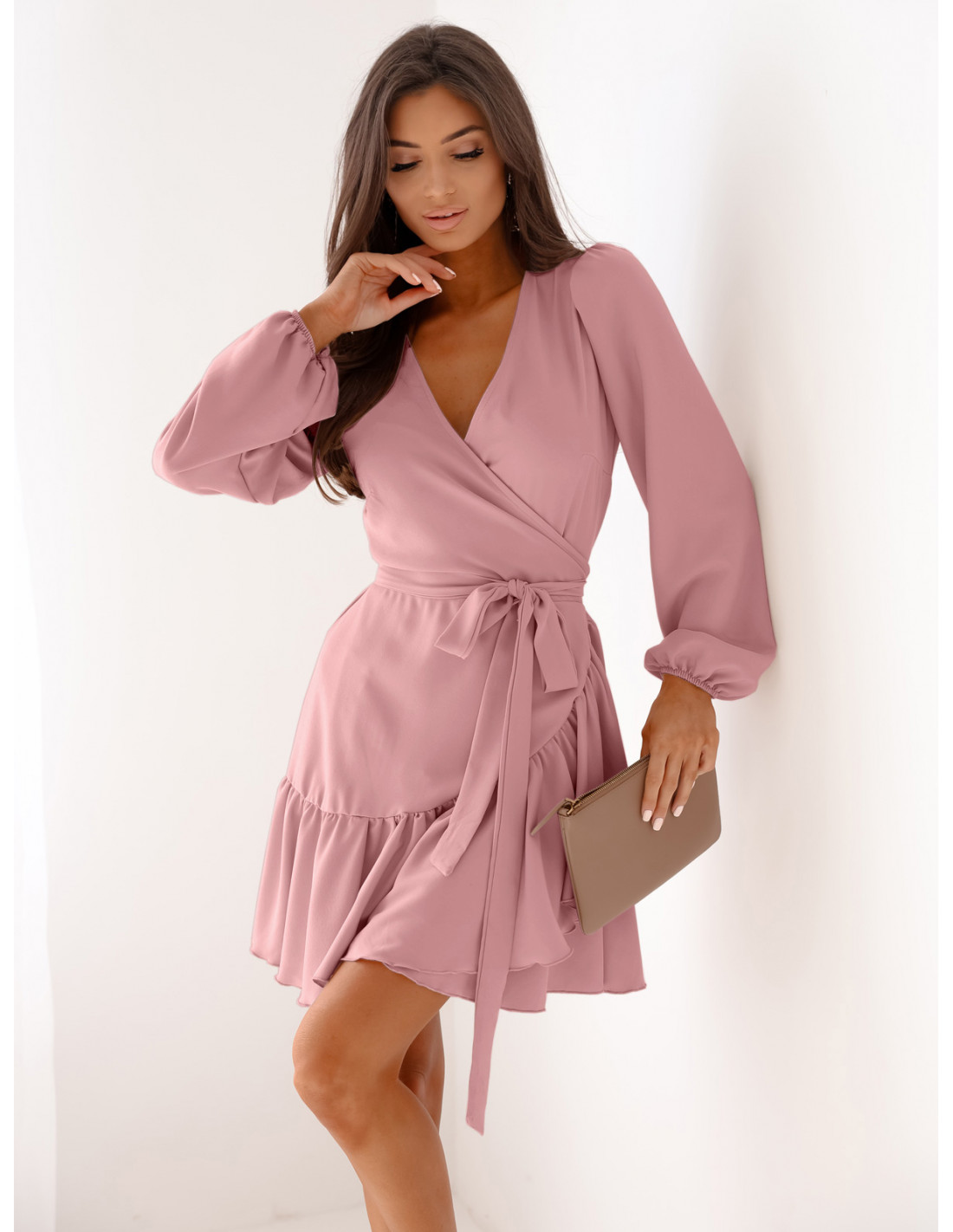 Przekładana sukienka z falbaną LURETTE - brudny róż