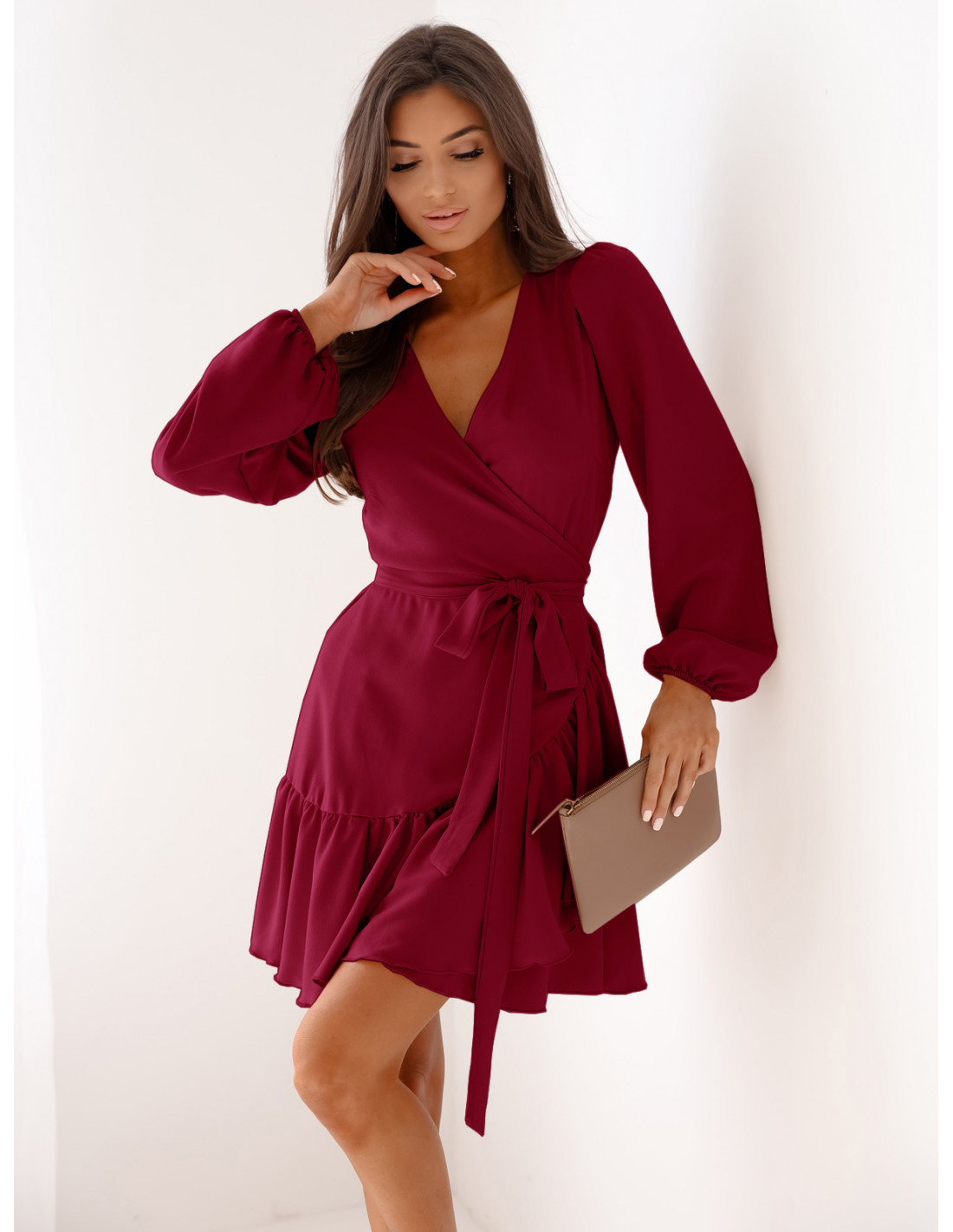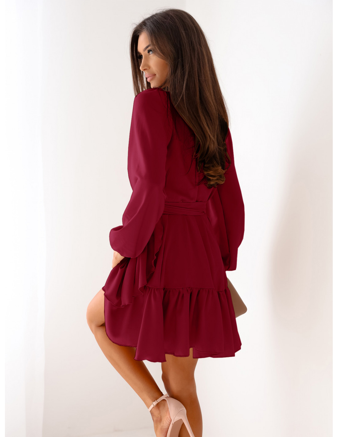 Przekładana sukienka z falbaną LURETTE - bordowa