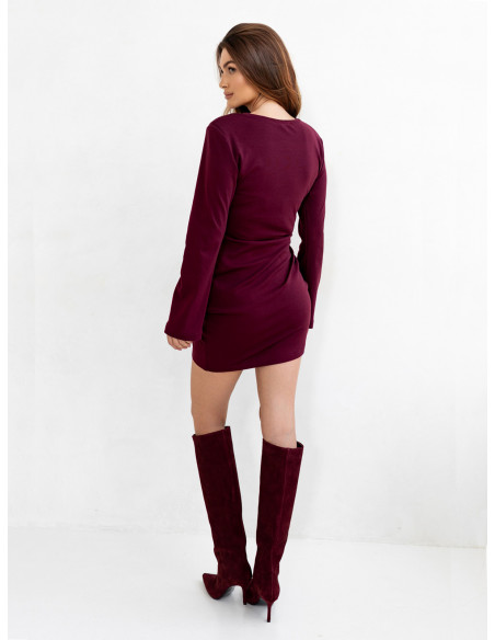 Sukienka mini z marszczeniem LYRICA - bordowa