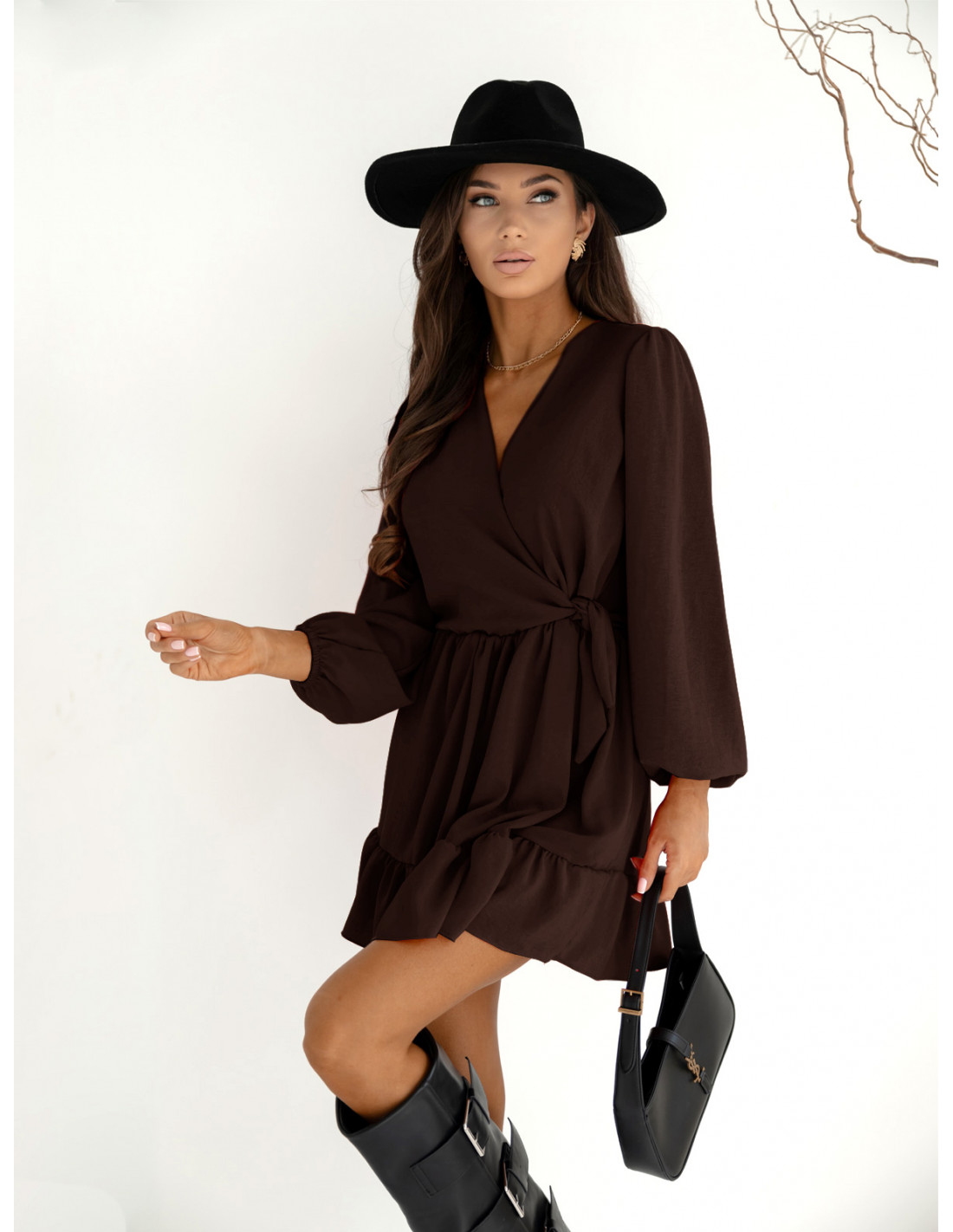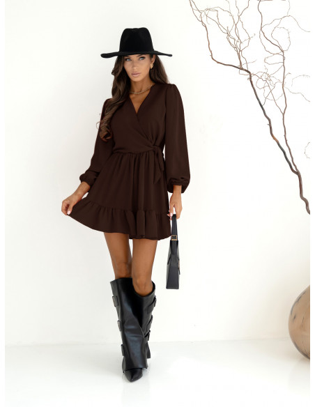 Rozkloszowana sukienka z falbanką - KALIFORNIA - czekoladowa