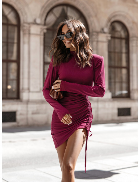 Wiskozowa sukienka mini z marszczeniem RAFINA - bordowa